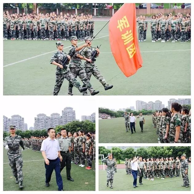 四川陆军预备役高射炮兵师第一团后勤装备处邓文刚处长、冠城集团副总裁杨凯钤女士、成都七中实验学校校长江宏老师出席军训汇报表演暨表彰大会,高、初中2016级全体班主任及1000余名学生家长观看了汇报表演。