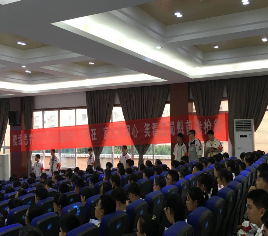 会议由初三年级主任谢俊昭老师主持,首先对上学期在武侯区期末统考中获得年级前10名的同学进行了表彰。获得武侯区期末统考第二名的马宇航等获奖同学分别和大家分享了学习心得,他们热情向全体同学发出号召:明确目标、顶住压力、寻找方法、发现乐趣,成就最优秀的自己。