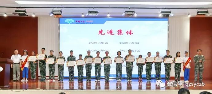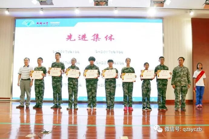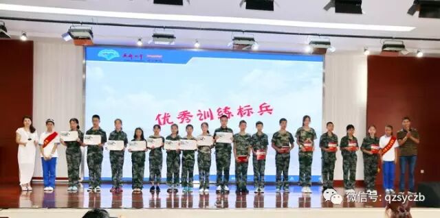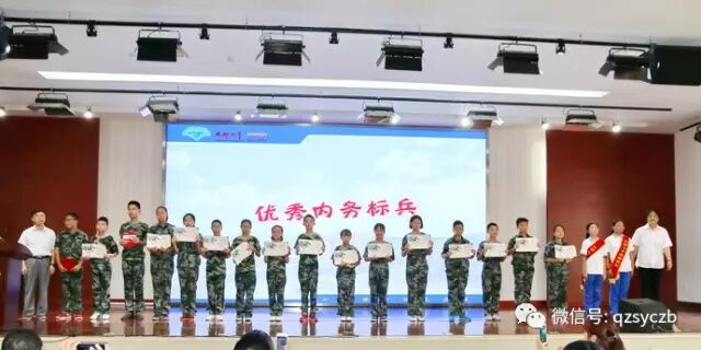 初中学部副校长梁大才老师宣布了学校的表彰决定,对训练过程中态度端正、作风过硬、训练刻苦、内务突出的先进集体和个人进行了表彰,向初一年级学生提出了学先进、赶先进、争当先进的期望。在同学们钦佩的目光中,被评为训练标兵、内务标兵的同学们依次走上主席台,从学校领导和部队领导手中接过了象征着荣誉的奖状,欣慰的笑容定格在这难忘的瞬间。