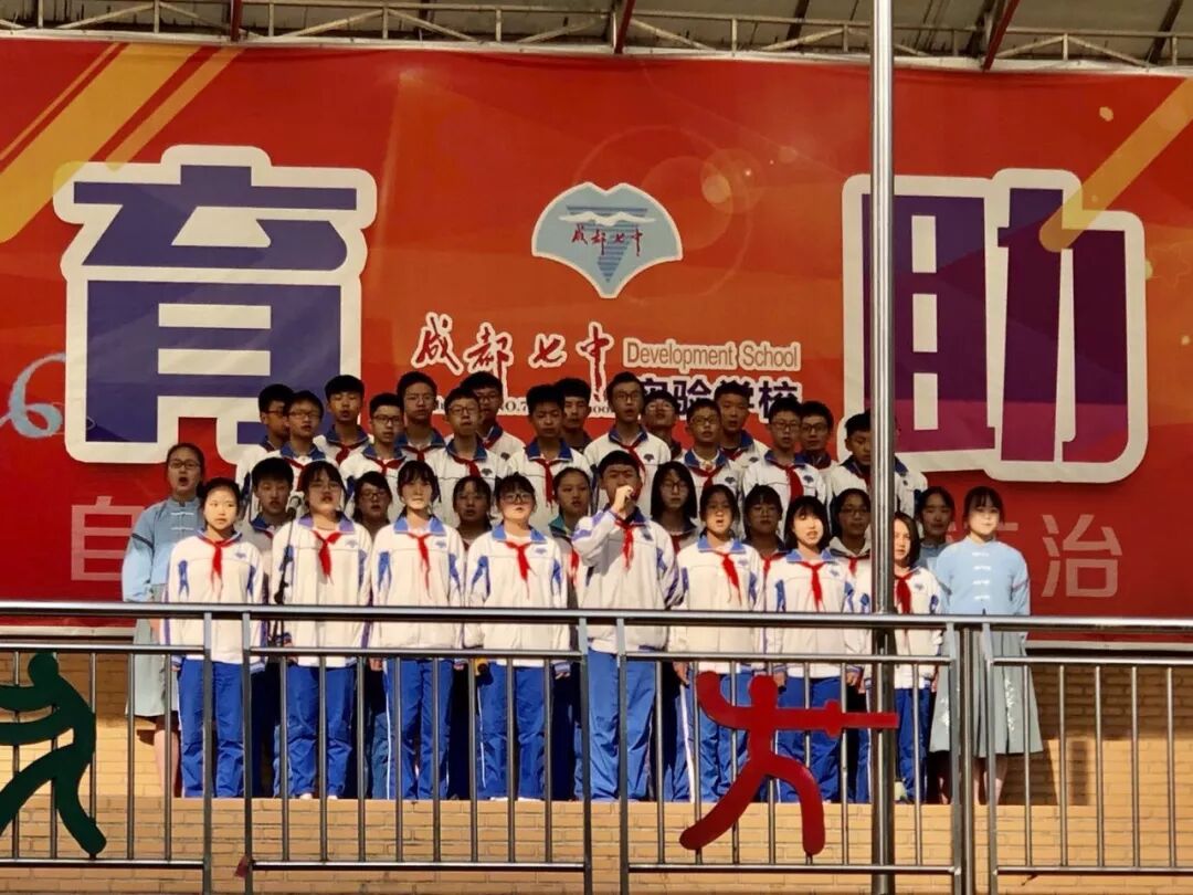 4月16日,成都七中实验学校正在举行隆重的升旗仪式,全校师生肃立,敬礼,迎接着这庄严的时刻! 场面壮观,吸引了学校围墙外的人们驻足观赏。