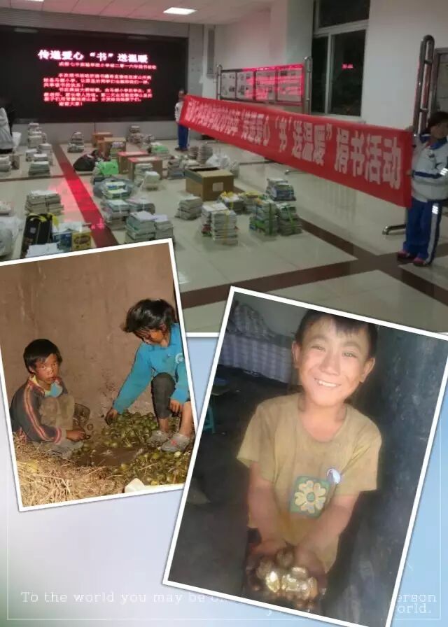 瞧!一堆堆野生核桃都出自凉山人民的双手,摘采、剥皮、凉晒,过程的艰难和辛酸只有他们知晓,加上交通的不便,老人与孩子们辛辛苦苦采摘的核桃又无法输送出山。寒冷的冬天刚到,但凉山州美姑县部分地区早已白雪皑皑,孩子们就等着这批核桃换来的微薄收入过冬。在充满爱心的易虹霞女士(本校二年级十班家长)的倡导和学校领导的组织下,我小学部全体师生捐书献大爱(此次捐出五千余本图书),慷慨解囊购核桃(购置600余斤核桃),