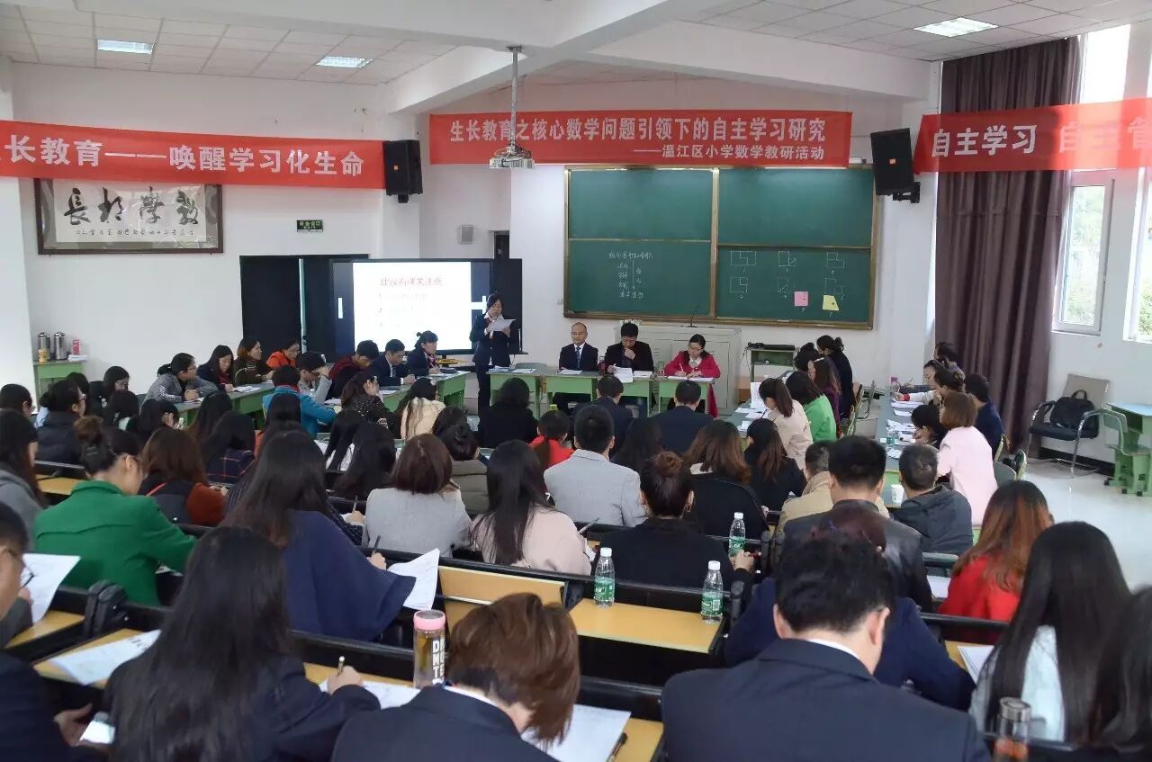 11月16日上午,成都市温江区小学数学教研活动在成都七中实验学校小学部举行。来自全区各校近100多名数学教师围绕主题为“生长教育之核心数学问题引领下的自主学习”进行了深入探讨和交流。