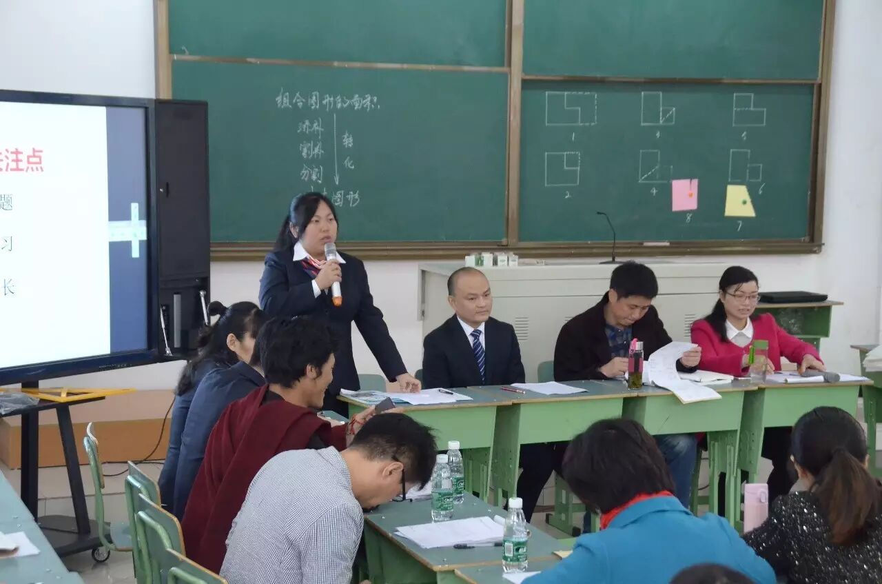 在评课环节,与会老师围绕今天数学教研的主题积极参与,认真讨论,并提出了自己的思考。教研员余晓华老师就两节课进行了点评。他认为学校在“生长教育”的理念下着眼学生的自主学习、自主管理、自主发展,以学定教,顺势而为,舍得等待。独学自探的学力单设计有效,课上给予了学生充分的自主学习的时间和机会,学生组展、班展井然有序,自主学习落到了实处。学生在相互质疑中生长,老师恰当的介入、适时的点拨和小结,起到了提炼升华、画龙点睛的作用,让不同层次的学生在原有基础上得到了不同程度的生长。余老师给老师们既做了教学的方向指引,还向全区数学老师分享了“教师引领的十句话”,为大家进行了教学理论的指导。