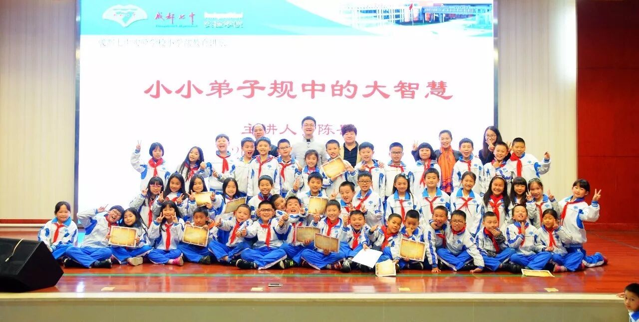 10月17日晚,知名少儿节目主持人、成都电视台少儿频道总监、国学启蒙教育倡导者陈岳叔叔,受邀来到成都七中实验学校小学部教育讲坛,为孩子们呈现了一场妙趣横生的国学课堂——“小小《弟子规》中的大智慧”。