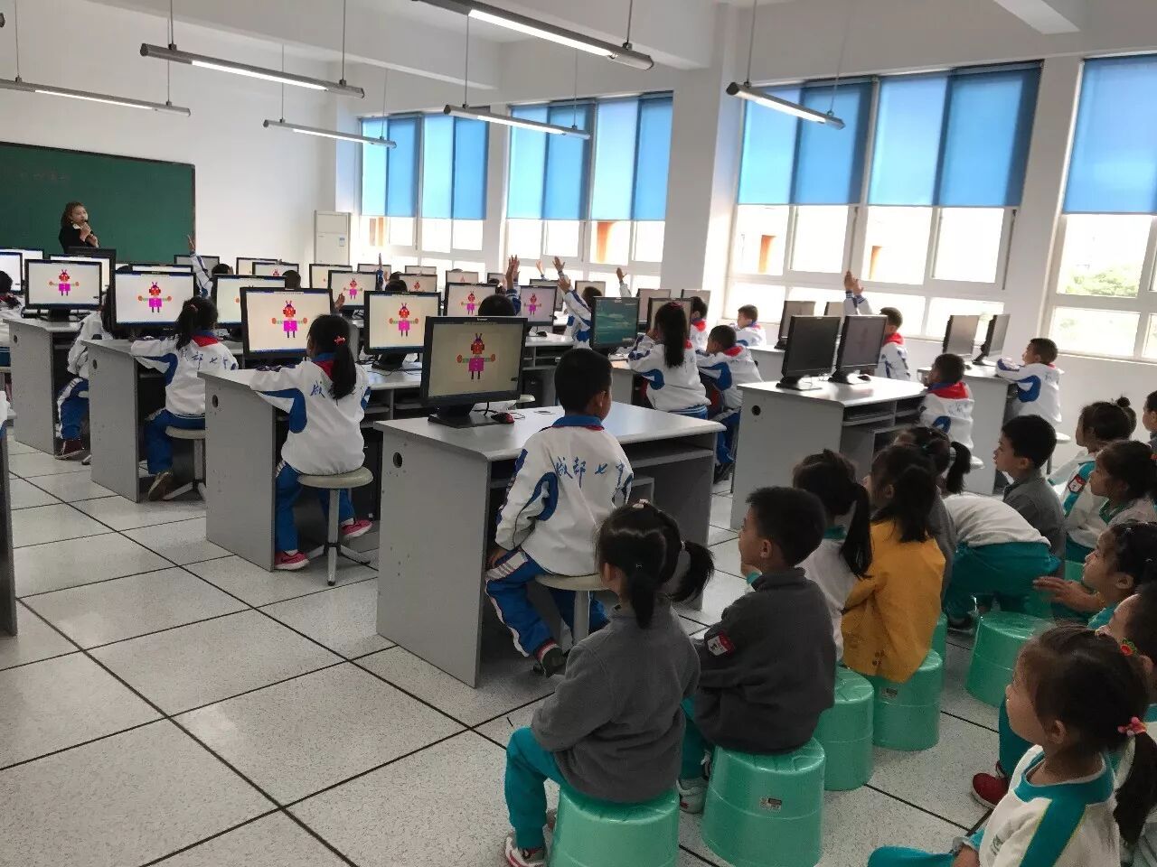 10月16日,孩子们率先体验了计算机课。在计算机教室里,幼儿园的小朋友和一年级的哥哥姐姐们一起分辨简单图形,认识绘图工具,利用shift键画图以及用油漆桶工具给图形上色。看到哥哥姐姐们端正的坐姿,在计算机前熟练的操作,还有和蔼可亲的老师进行互动式的活力教学,小朋友们的眼神里透露出无比的向往。