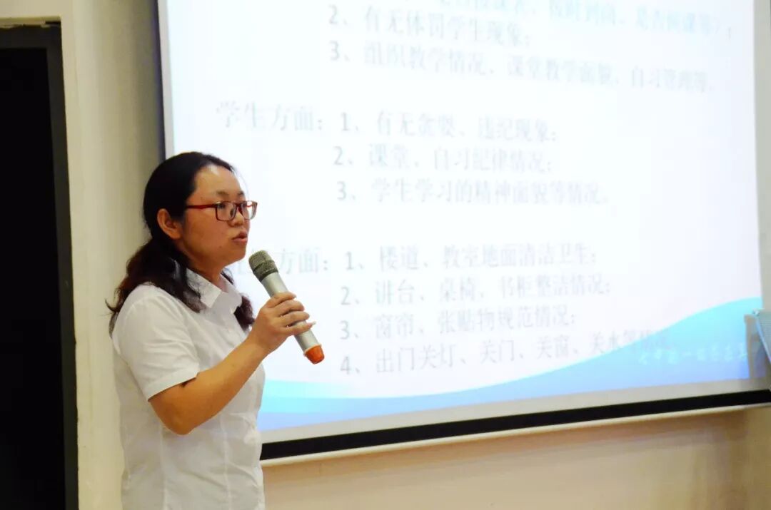 赵主任强调了近阶段的德育工作重点:以活动育人为载体,构建德育创新课程;做好校园文化的建设,创建良好的育人环境,打造书香校园,提升文化品味;校园安全工作的梳理与排查;组建新一届“三级家委会”,同时加强生活部的管理和指导。