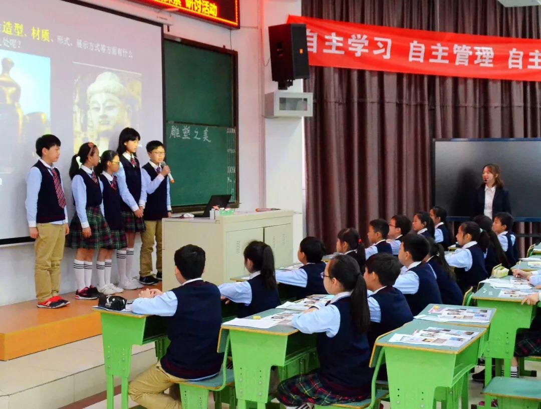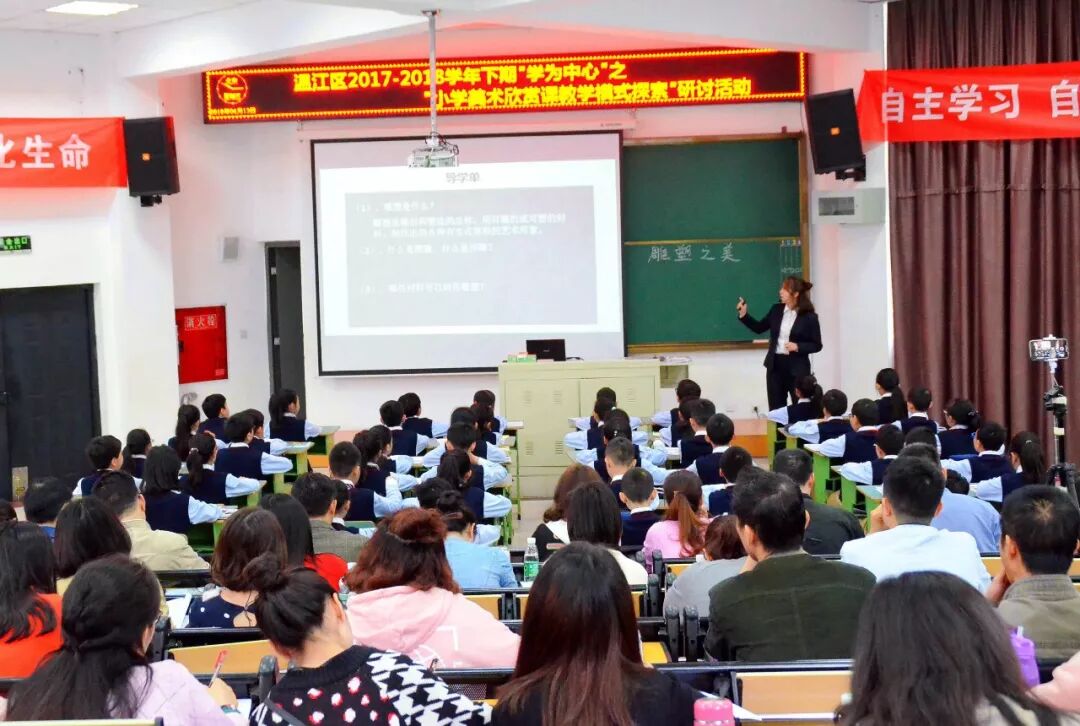 4月11日上午,温江区“学为中心”之“小学美术欣赏课教学模式探索”研讨活动在成都七中实验学校小学部举行,春雨过后的校园格外美丽,师生们在活动中展示出的艺术才华如同百花清甜的香气,萦绕在校园的每一个角落。