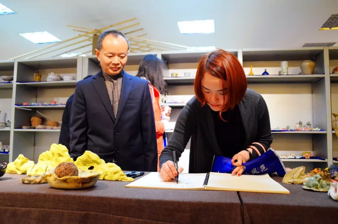 在课间休息时,陈天翠主任和小学部美术教研组长张国和老师陪同教研员冯老师与全体参会老师参观了“悦陶坊”,孩子们在老师的指导下,用一双双巧手塑造了各种栩栩如生的物件——古朴的茶具、淳雅的花瓶、典雅的挂画,充分体现了师生的专业水平和艺术造诣,冯老师对师生的创作给予了充分肯定!