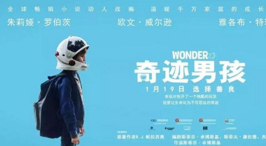3、《奇迹男孩》一部家庭剧情片,朱莉娅·罗伯茨主演。该片讲述了一位有面部缺陷的小男孩如何进入普通学校,并重拾自信、积极面对生活的励志故事。
