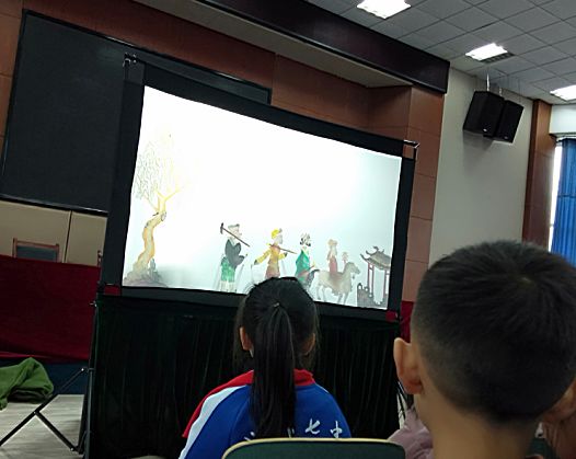 此次活动邀请到了国家非物质文化遗产皮影戏传承人何银安老师,何老师为同学们表演了《猪八戒吃西瓜》《龟兔赛跑》《武松打虎》等精彩节目。灯光亮起,器乐奏响,精彩的演出开始了,小朋友们瞪圆了眼睛,聚精会神地观看表演,当看到武松与老虎英勇搏斗时,孩子们爆发出阵阵掌声……