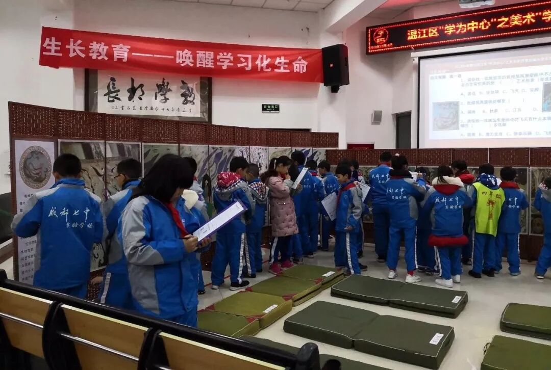 风铃在冬天撩拨起心中的旋律,奏响了美术教学研讨的序曲,2018年12月14日上午,温江区“学为中心”之美术“学历案”创编与使用实践研究活动在成都七中实验学校小学部阶梯教室举行。我校文霞、张磊老师进行了课堂教学展示。温江区研培中心教研员冯龙俊老师、温江区美术中心组成员以及全区美术教师参加了本次活动。