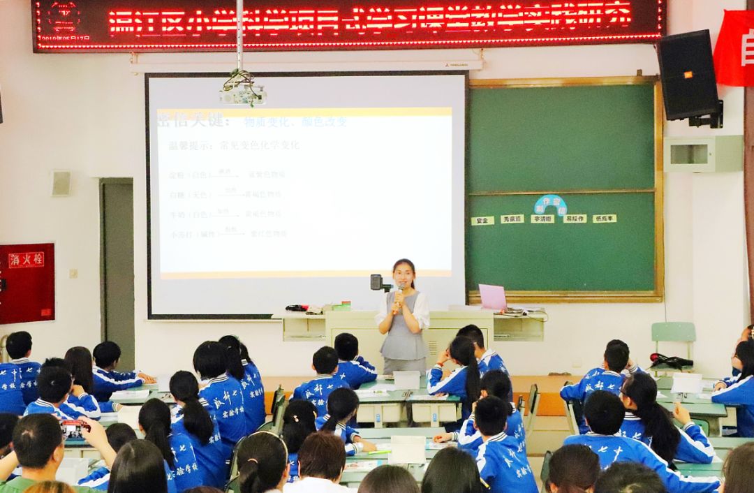 上午9点,研讨活动在彭伟老师主持下正式开始,王丹老师带领六(9)班的同学们呈现了课例《制作密信》,同学们学习了为什么要做密信、如何做密信,从选题、选材到设计、制作,再到成本核算、改良改进,项目主题明确、思路清晰,教师聚焦问题,学生主动探索并积极分享,积极性被充分调动!在作品展示环节,在师生共商的评价标准下,从安全、无痕迹、字迹清晰、容易操作、低成本这五个方面进行评价,选出最优方案。同学们在愉悦的学习氛围中,习得了科学概念,提升了科学素养。
