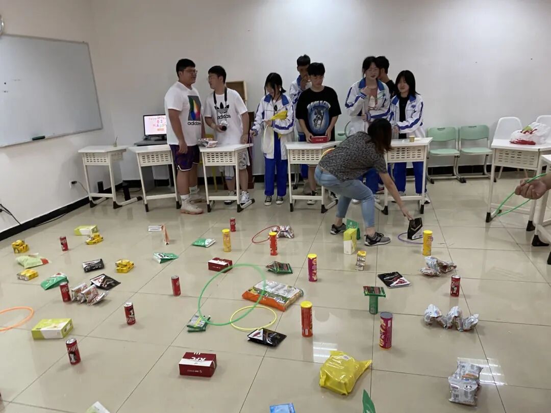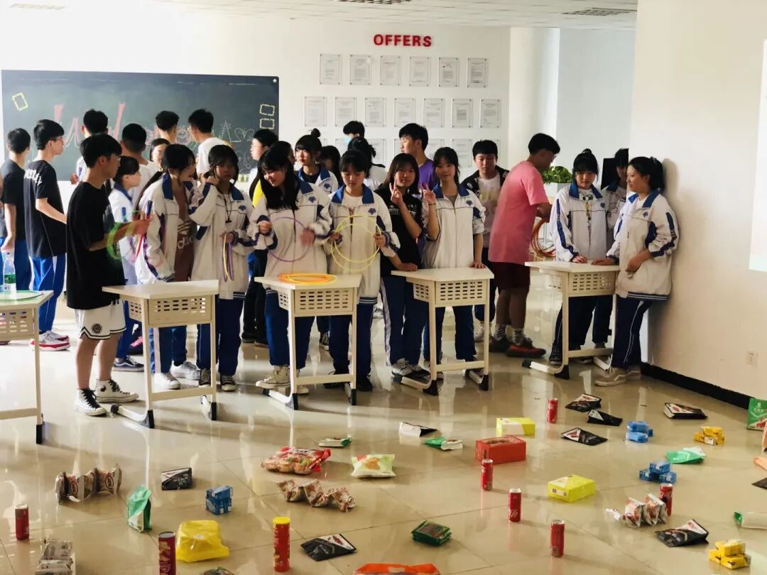 活动教室已经摆满了童年的零食,同学们拿着通过小游戏获得的套圈开始套取自己喜爱的食物。