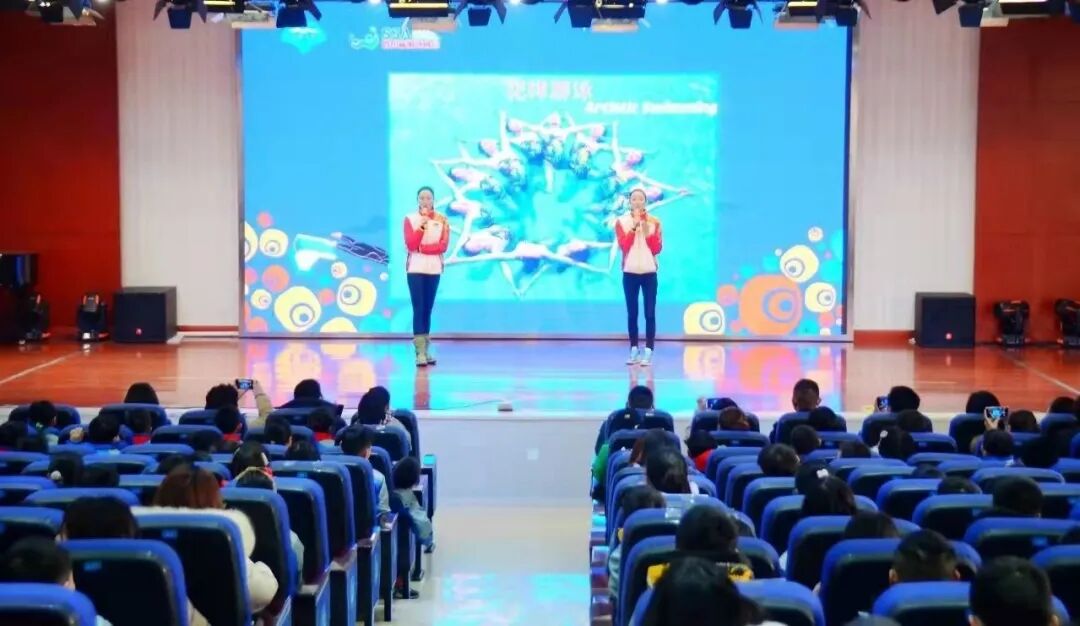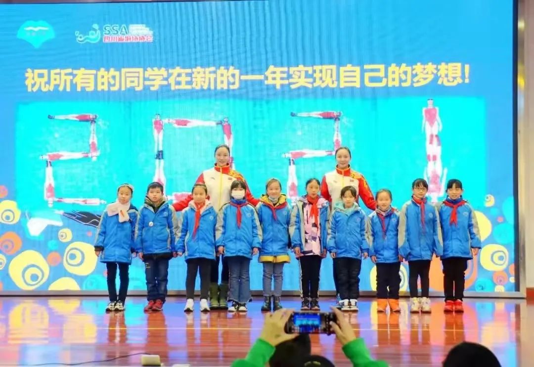 学校游泳教学指导专家、中国花样游泳奥运奖牌突破者、世界冠军蒋文文、蒋婷婷姐妹和孩子们作精彩的分享