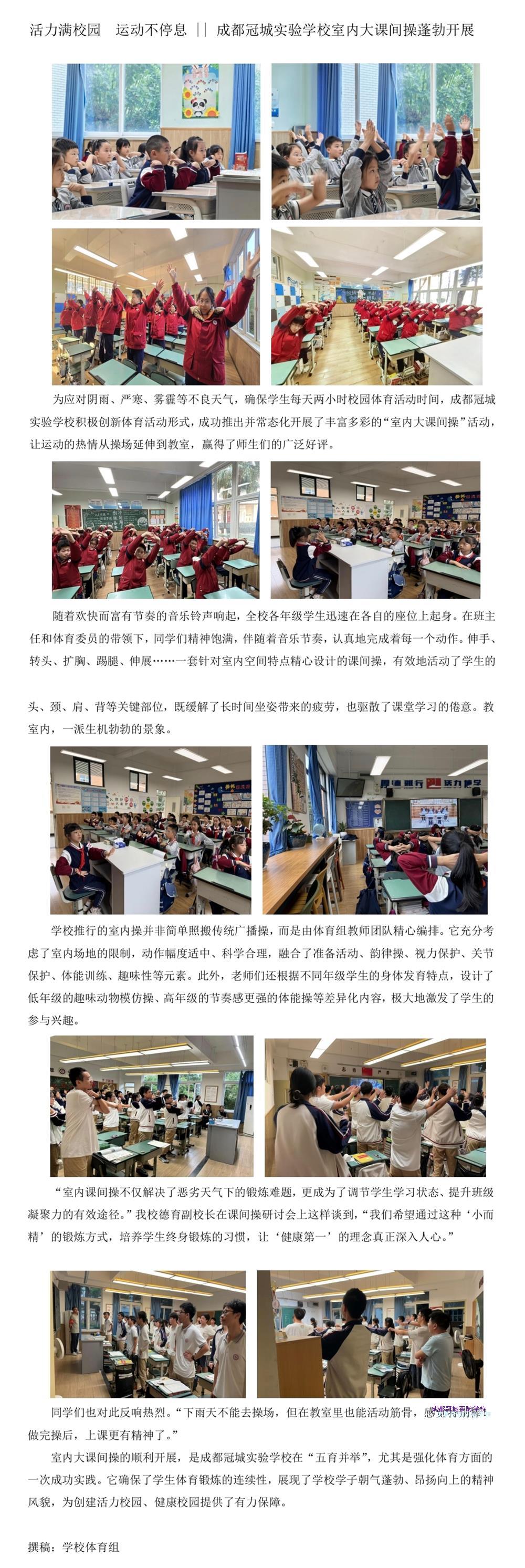 活力满校园 运动不停息 || 成都冠城实验学校室内大课间操蓬勃开展